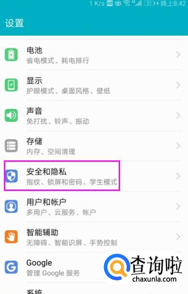 【设置】小主页里,【安全和隐私】指开下,如图。