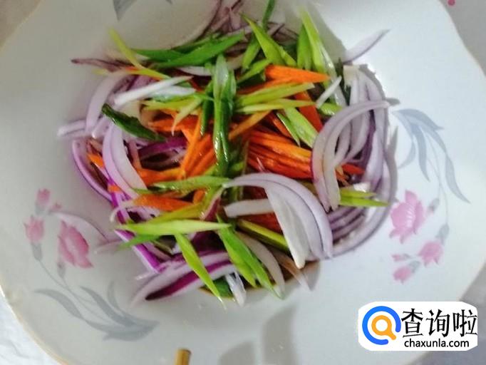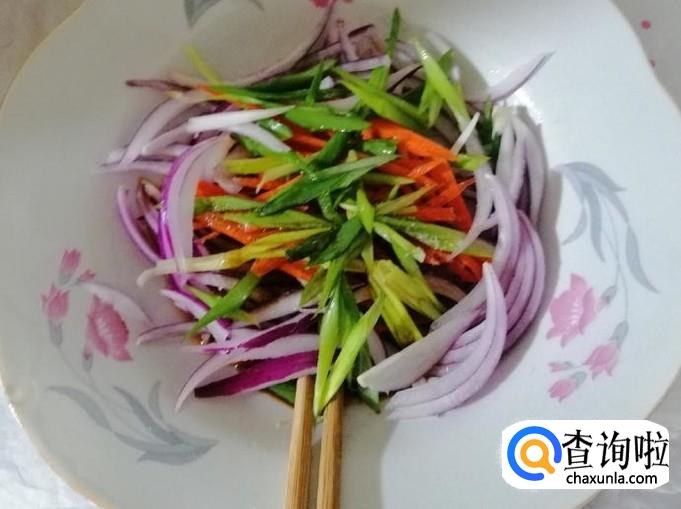 把事先切好的三丝放入盘中,加入调好的料汁,用筷子把菜搅拌均匀就可以了,也可以根据自己的口味,加入别的食材和调料。
