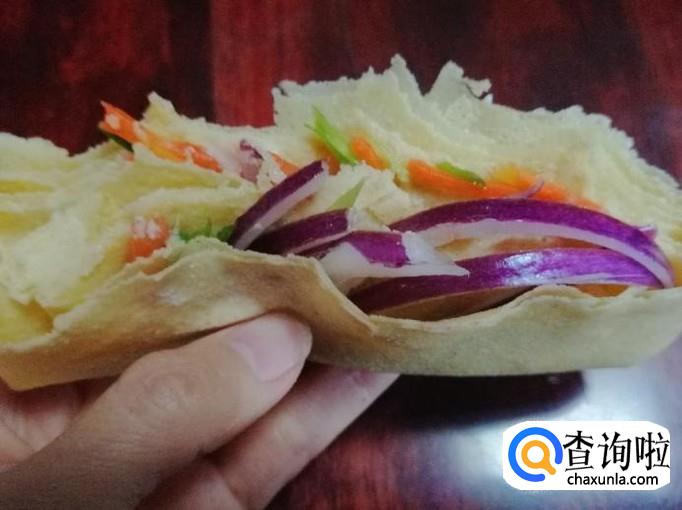 准备好适量新鲜的杂粮煎饼,我这里选用的是小米、黄豆煎饼,这款煎饼比较适合用来控制血糖,是糖尿病患者的优选,把煎饼取好待用。