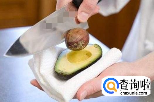 用刀子将牛油果上面的果核去掉,如图所示。