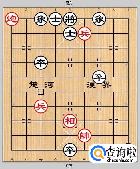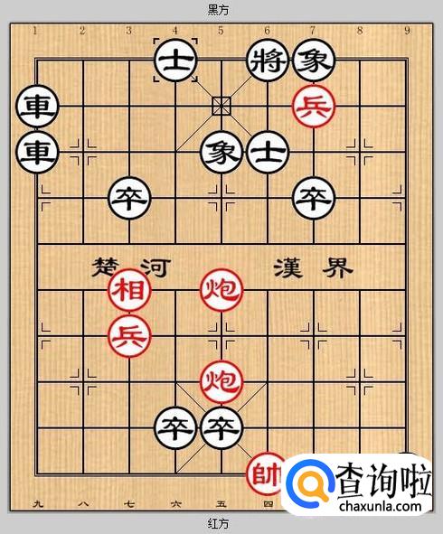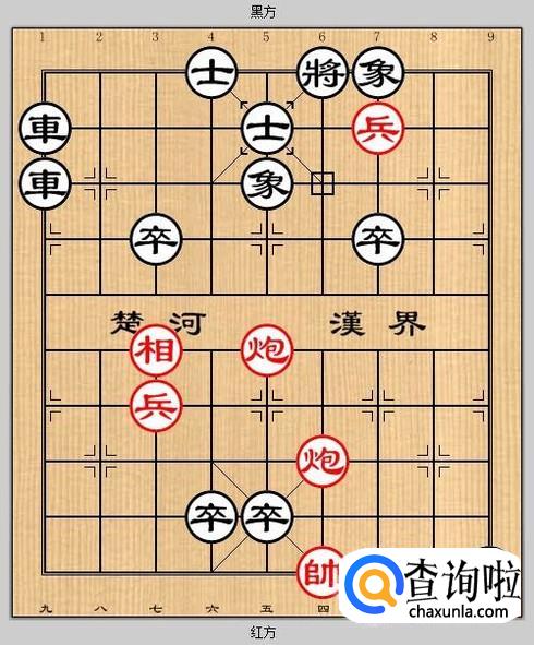 红方走相七退五。黑方只剩两个卒子无法造成威胁,红方也是独炮难支,最终只能和局。