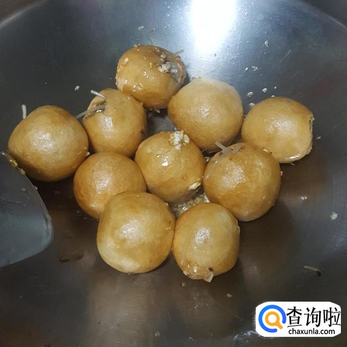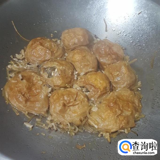 倒入塞好的油面筋,加入少量胡酱油,加入温水高过于油面筋