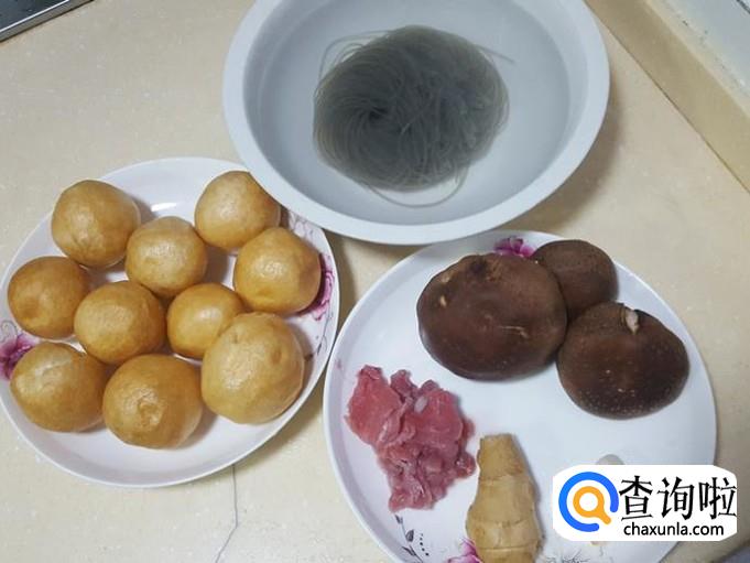 油面筋、番薯粉丝、肉、香菇、姜蒜葱、酱油、蚝油、料酒、盐