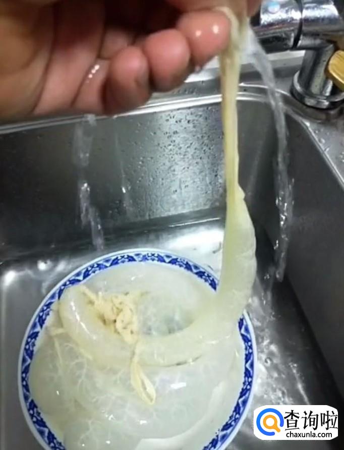 首先我们将准备好的肠衣在自来水里面冲洗干净备用