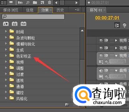 在扩展出来的目录中找到色彩校正,点击展开下级目录。