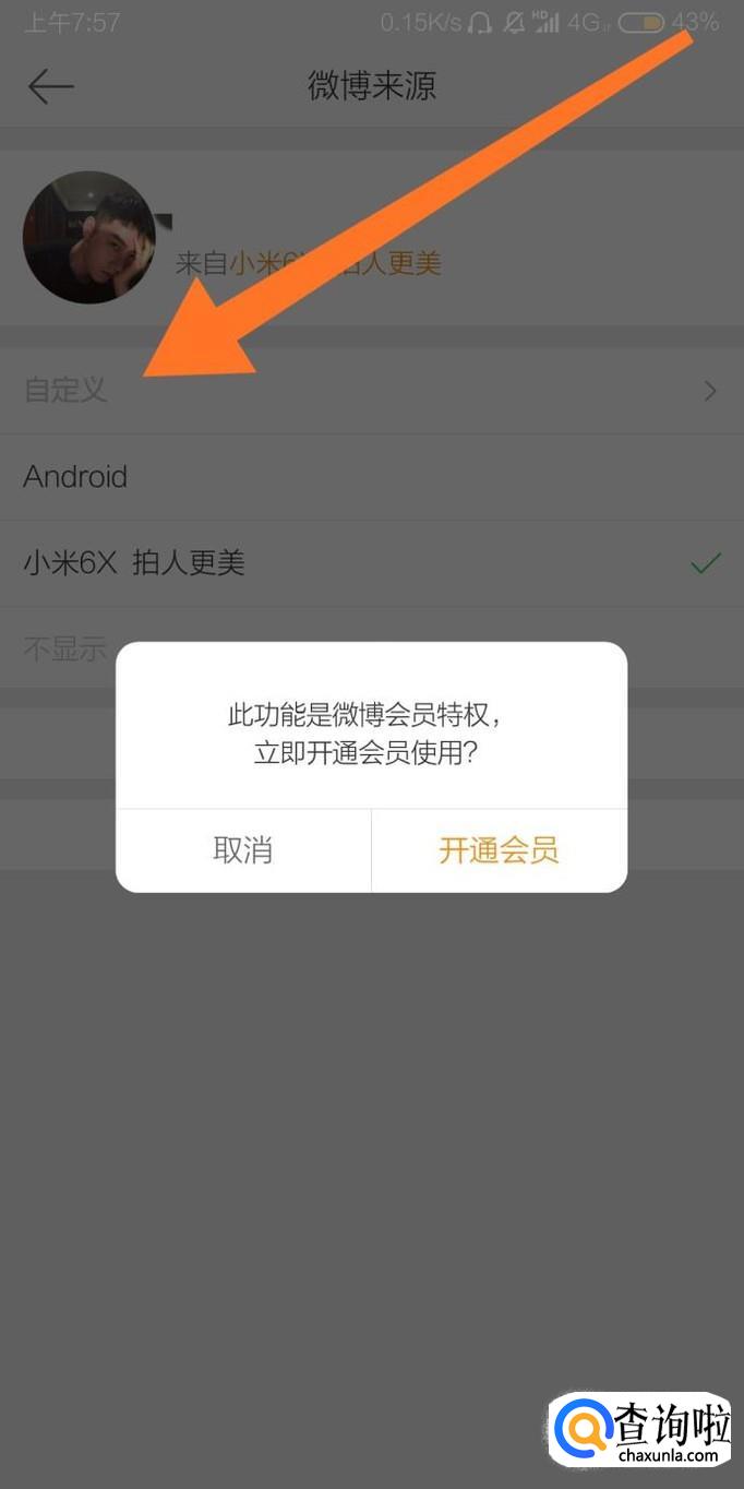 如果需要自定义微博来源则需要开通微博会员。