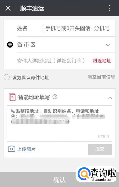 点击对话框后,按照提示在对话框中输入姓名、电话号码、寄件和收件地址