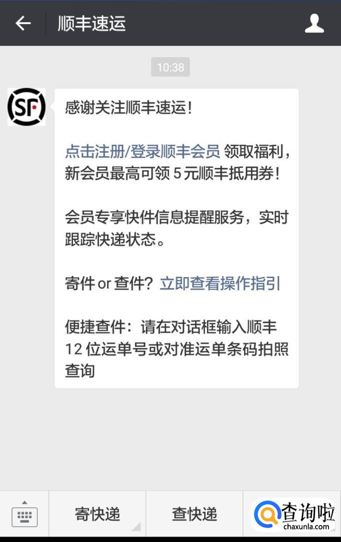 首先选择关注一个快递公司的公众号,以顺丰快递为例。