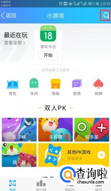 弹出的界面,我们点击小游戏;