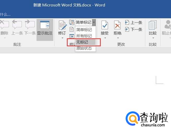 在下拉列表中,点击选择“无标记”菜单选项,然后Word文档中的所有标记内容将不再显示。
