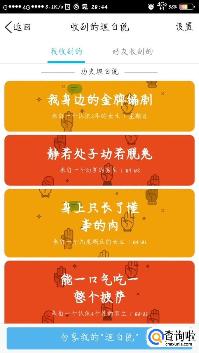 这样你就知道给你发坦白说的好友的信息了,你可以在从中推理出来,但是小编没有这个能力。