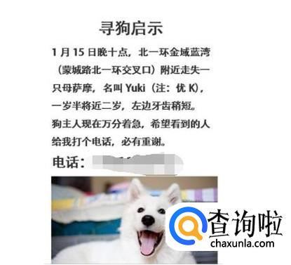 除了贩狗市场,还应该立即打印一些寻狗启事,粘贴在小区和一些人们可见的公告栏里,这样可以发动周边的人帮你寻找。