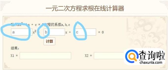 在最上面的三个方框中分别输入要计算的方程式的数值