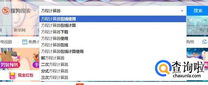 首先,在搜狗搜索引擎上输入”方程计算器“,找到计算器的网址