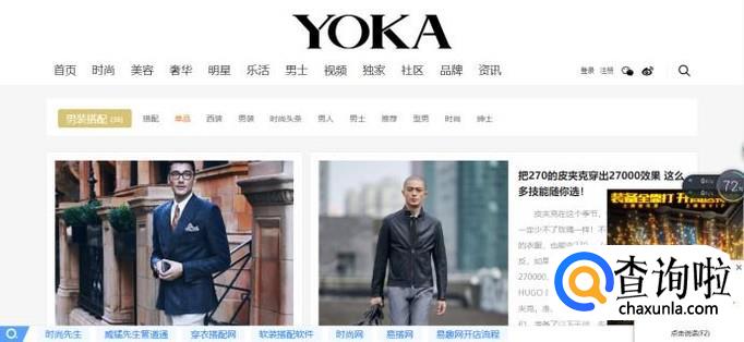 Yoka。Yoka时尚网站中的男装搭配就非常适用于解决广大男性朋友的搭配方面的疑惑。其中利用了非常多明星的例子来帮助大家。