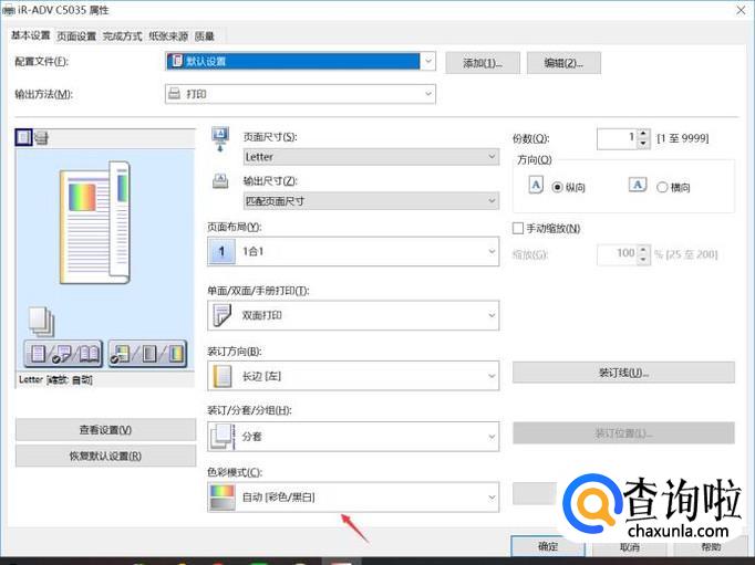 进入到这里的时候,我们点一下调整“色彩模式”,这里一般是“自动”,我们可以调整成彩色。再打印就是彩色的了~