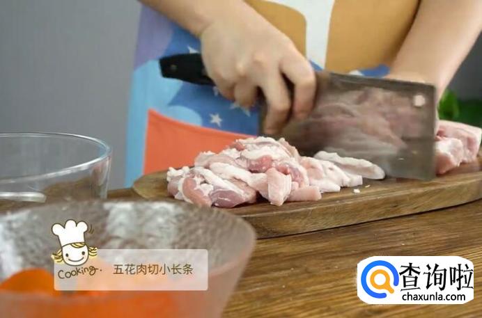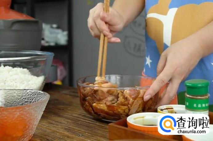 五花肉用生抽、老抽、白酒、五香粉、糖、盐、蚝油腌渍。
