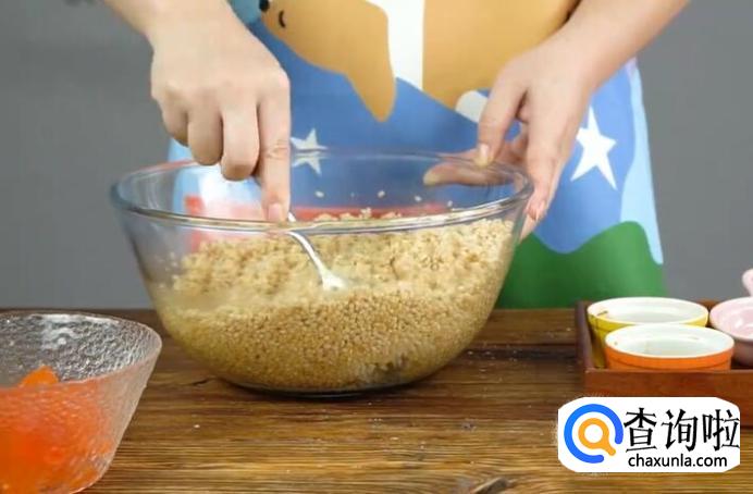 糯米加入油、生抽、老抽、糖、蚝油调味。