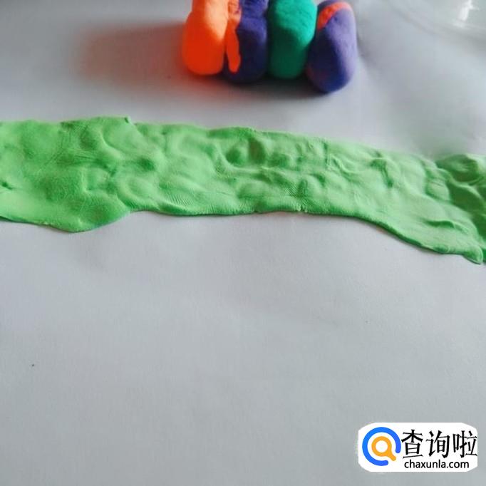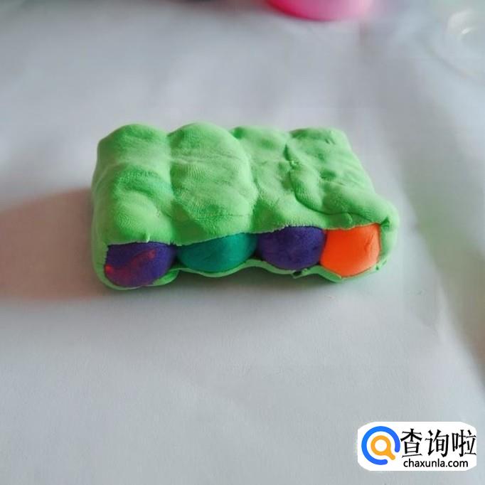 再用绿色超轻粘土做一根长条,再压扁,就是坦克的履带。做好后速度包住坦克的轮子。