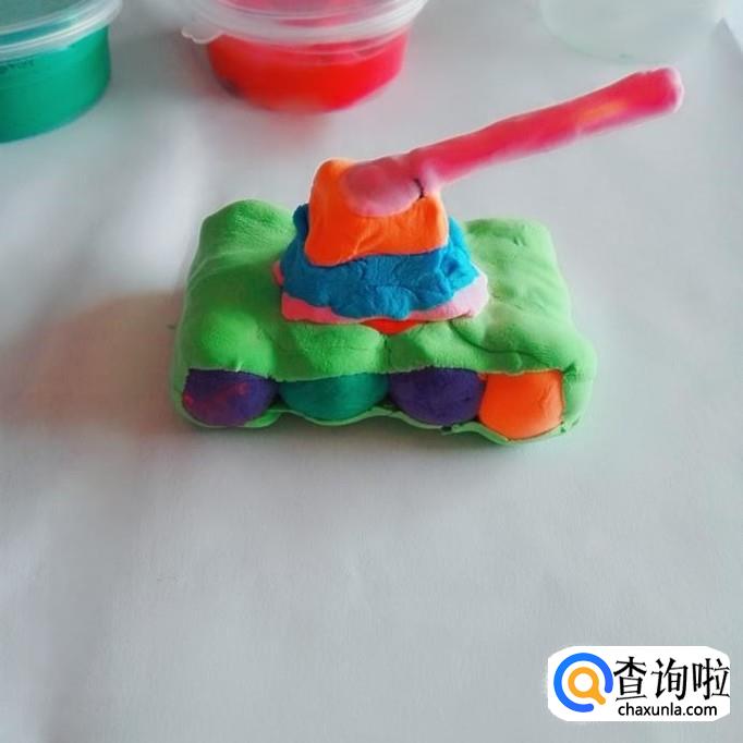 再把坦克的炮塔做好,坦克炮用吸管做好再用超轻粘土包好,再粘上去。这样坦克就做好了。