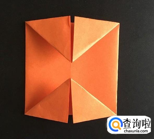 翻回来,沿着中间线,将四个角向内折。