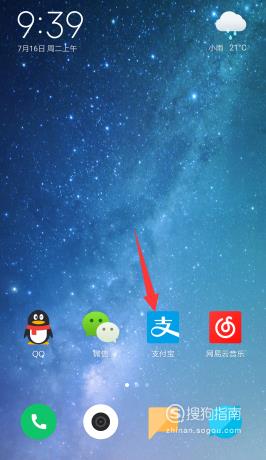 首先打开手机上的【支付宝】。
