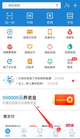 来到支付宝页面后点击右下方的【朋友】。