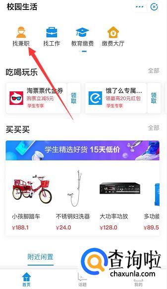 来到【校园生活】之后看到左上方有一个【找兼职】,点击进去就可以找到兼职工作了。