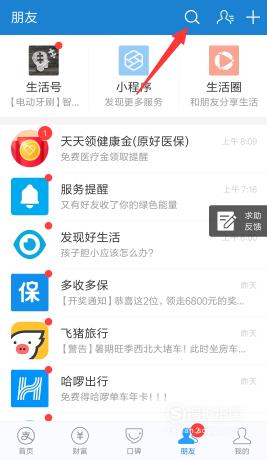 在【朋友】界面中点击右上角的【放大镜】搜索。