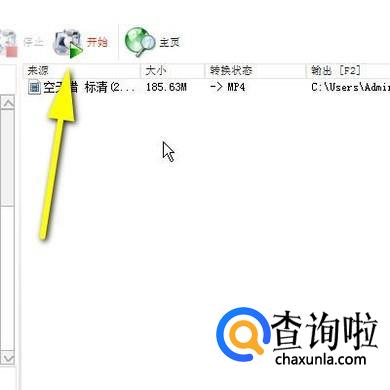 点击确定后,转到转换格式的操作个界面。再点开始按钮,