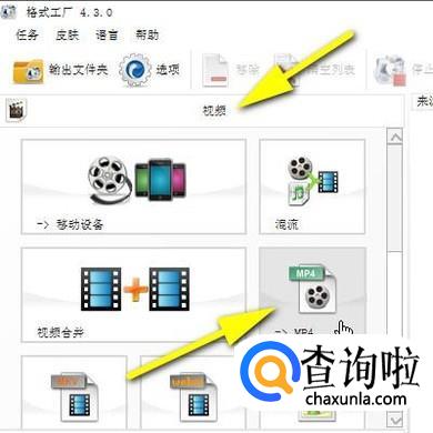 启动格式工厂这款软件,进入到软件主界面。点“视频”这里,再点“MP4”