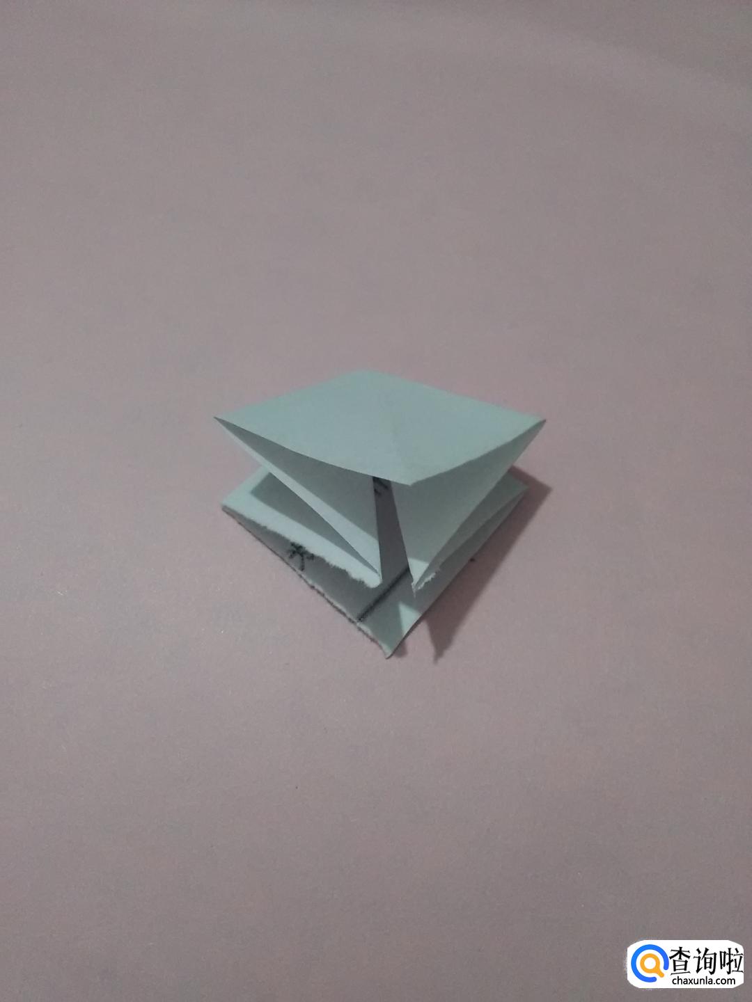 将两个对面的角向中间折,另外两个角压好,折成小的正方形。