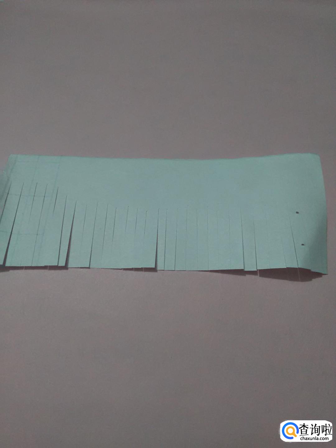 用剪刀将纸条下半部分剪成细细的小条,当做菊花的花瓣。