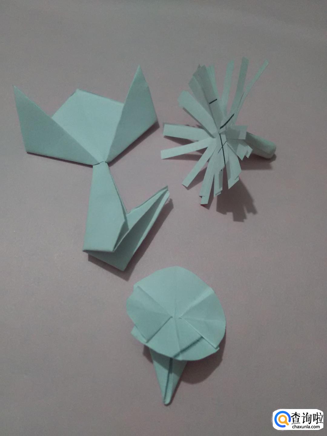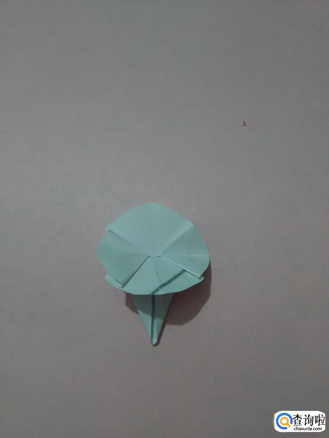 将上方的花朵边缘全部向下打开,翻成一个圆形的花瓣,喇叭花就折好了。