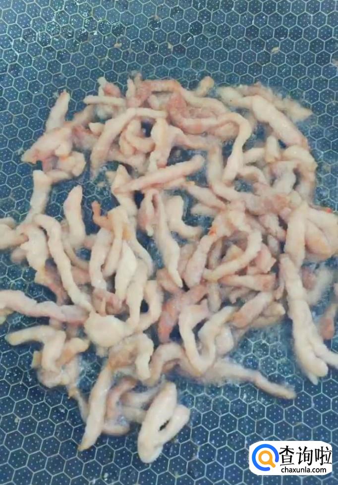接着我们在锅中加入少许油,放入肉丝,加入适量的酱油,炒熟捞出放入盘中