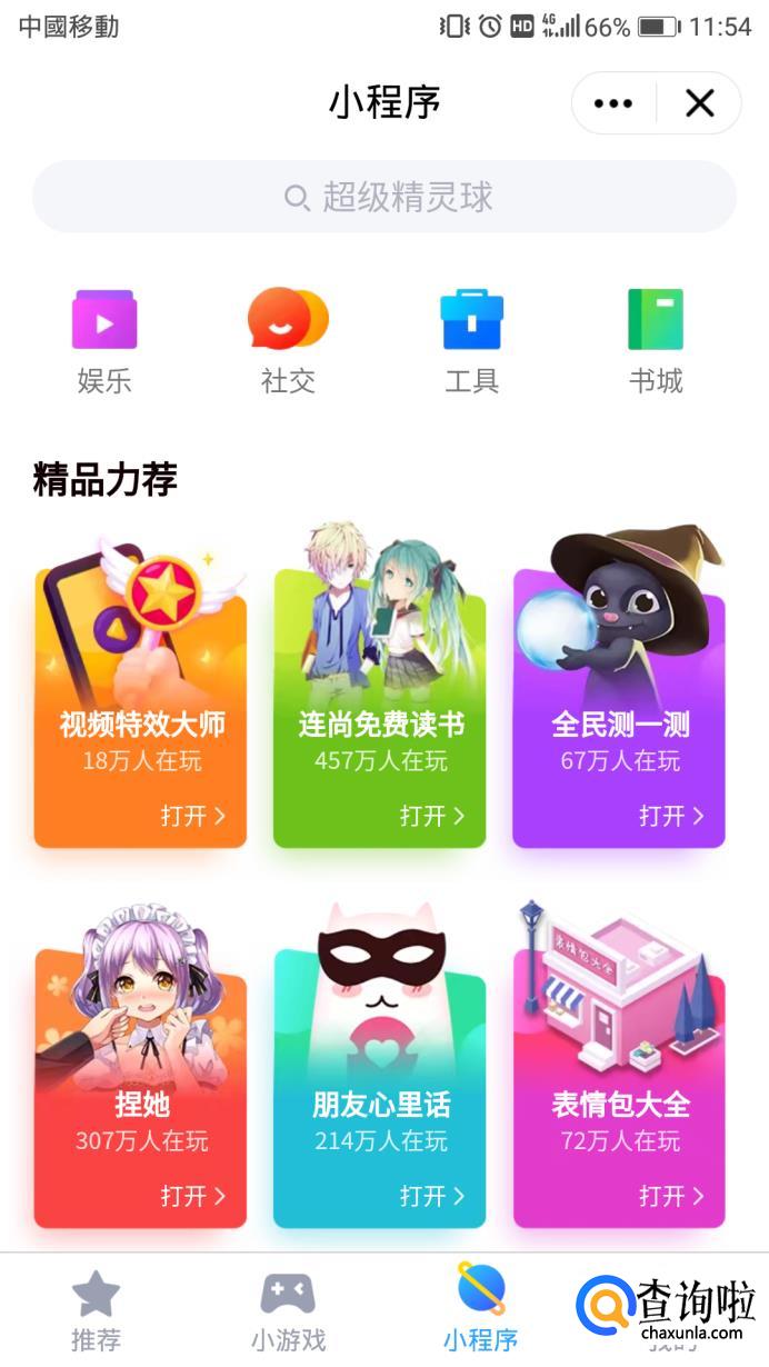 进入页面,点击第三个“小程序”,即进入小程序页面。