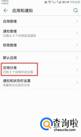 弹出的界面,我们点击应用分身;
