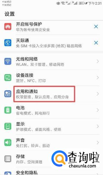 弹出的界面,我们点击应用和通知;