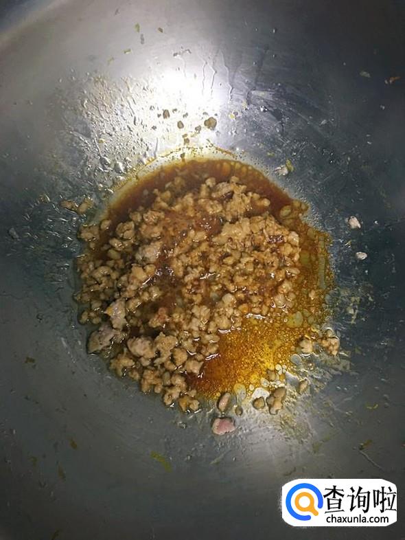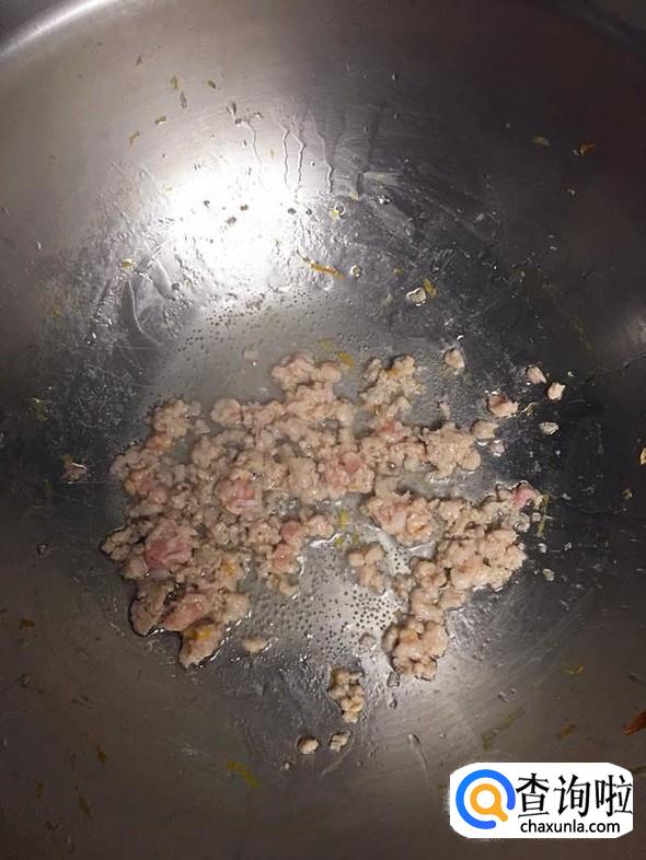 炒锅中放入少许食用油,油温热时倒入肉糜。