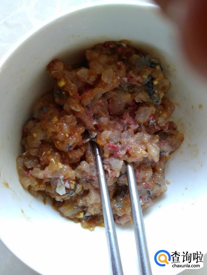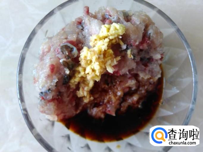 把鱼肉剁成鱼饼,加适量的盐、姜蓉、1勺生抽倒到大点的碗搅拌均匀,