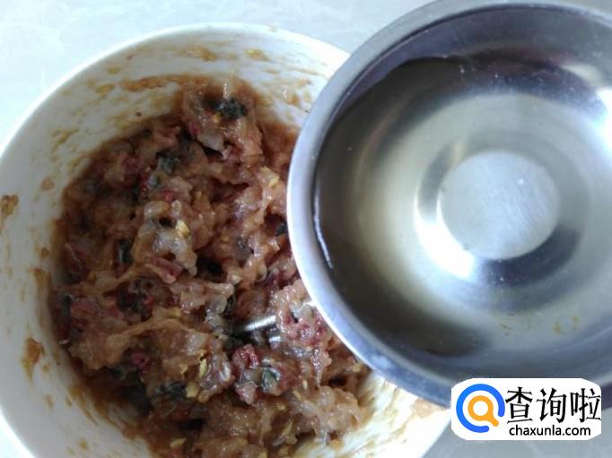 用筷子顺着一个方向搅拌1分钟,然后加1勺料酒。