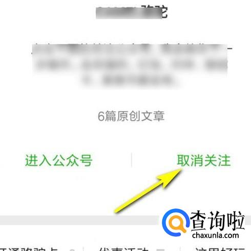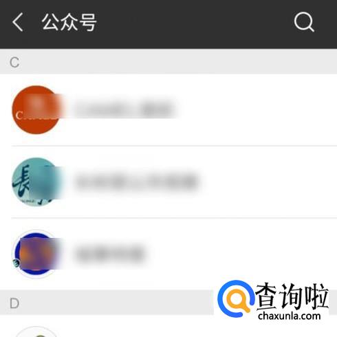 在这里展开着所有自己已关注的公众号。手指点一下要取消关注的公众号。