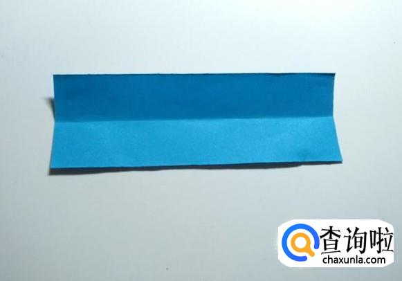将长方形纸沿中心线对折后打开,然后把上下两面折向中心线。
