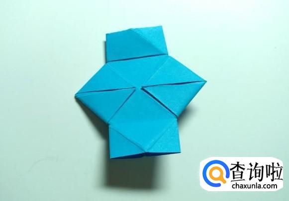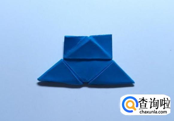 将左侧的上下两面分别折向中心线,然后将折纸对折。