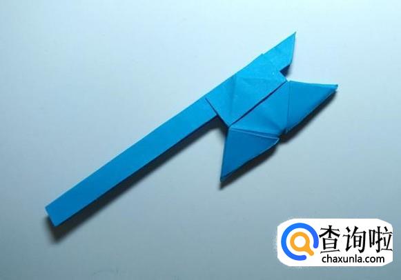 把两部分折纸相交的地方粘住,斧头就折好了。