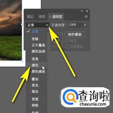 如下图所示,点击此下拉按钮,在弹出的菜单中选择:滤色