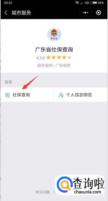 接着就会出现社保查询和个人信息绑定,我们点击社保查询。