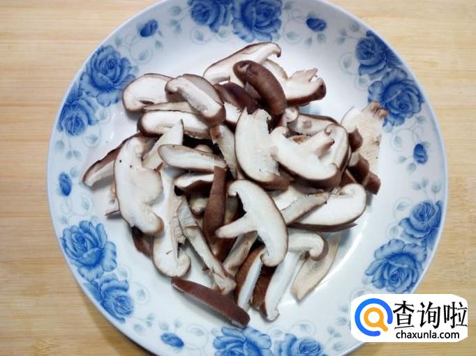 香菇收拾清洗干净,控干水分,切成片。