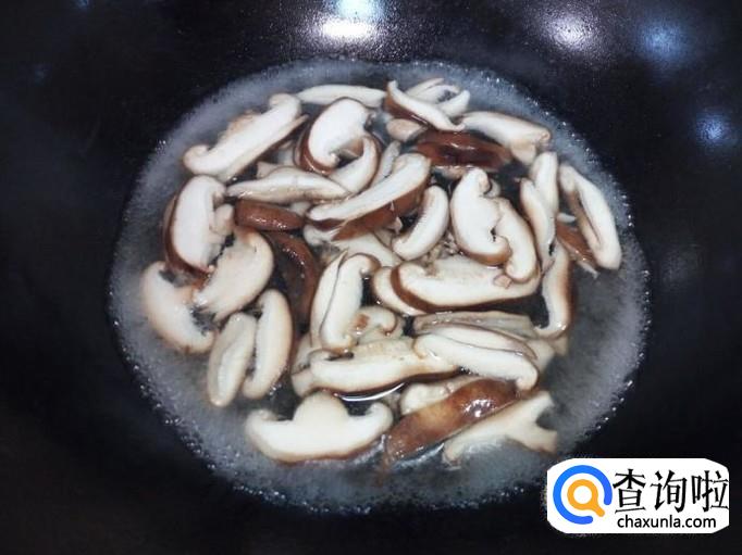 香菇用水焯一下,水开后入锅10秒钟捞出,用冷水过凉,沥干水分。