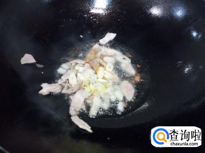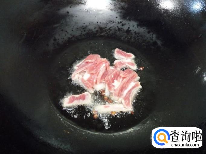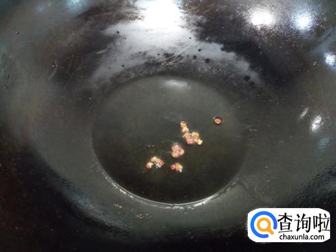锅里放入油加热,油热后放入花椒爆锅,放入肉翻炒。
